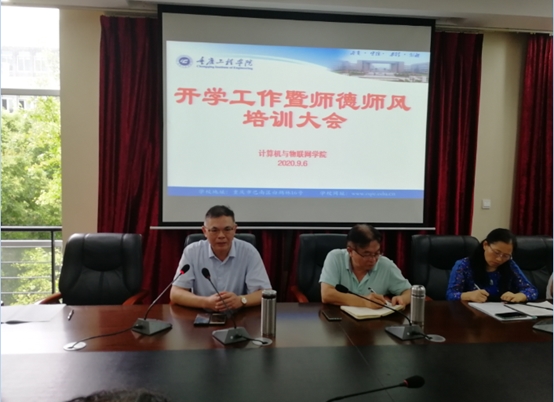 本网讯(文/图 罗桓)2020年9月6日上午10点,计算机与物联网学院在第七会议室召开开学工作暨师德师风培训会,会议由覃华伟书记主持,桂国庆校长参加了会议。
