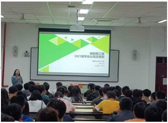 宋苗、谢钱涛老师,以物联网专业相关理论展开话题,与同学们进行了学业分享,分析了专业的就业前景,详细讲解了专业特点以及专业学习方法,创新创业能力的培养,并利用自己多年工作经验给同学们的发展方向做了指引和规划。加强了同学们对专业的认同感和对学业规划的重视度。让对物联网工程专业还不那么清楚、对自己未来方向感到有点儿迷茫的同学提供方向选择。