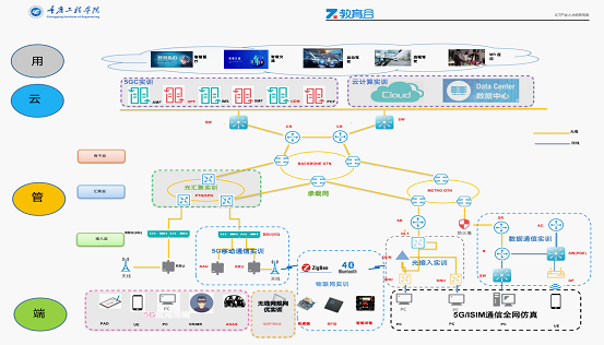 实训基地覆盖“端、管、云、用”等ICT网络各个层级,以“课、证、赛、创”融合的实验教学方式,提供5G移动通信、网络规划与优化、物联网智能感知、物联网综合应用、云计算及大数据应用等方面的课程教学和实验实训,集课程教学、实验实践、科研双创、行业大赛、技能认证培训、行业展示体验为一体,是重庆工程学院校企合作模式的积极探索,是校企合作共建专业的成果体现,致力于培养符合行业发展、满足产业需求的“基础好、素质高、能力强”具有社会责任感、创新精神和实践能力的应用型人才。