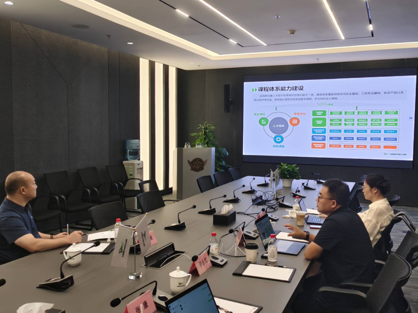 李发陵在走访过程中,参观了绿盟科技集团股份有限公司展厅,倾听了绿盟科技集团股份有限公司关于工控安全靶场建设的成功案例,与李永松总工程师就学校办学定位、人才培养、社会服务、合作成效、学院建设规划等方面进行深入交流,为学院产业学院建设、专业建设、课程建设、实验室建设、学生实习就业等工作打下一定基础。