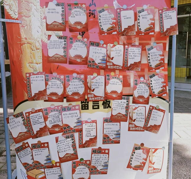 此次留言活动不仅为同学们提供了抒发爱国情感的平台,更引导大家深刻理解新时代的历史性成就与变革,进一步增强了民族自豪感与时代责任感。同学们纷纷表示,将自觉把个人成长融入国家发展大局,把对祖国的真挚祝福转化为砥砺前行的实际行动,勇担时代使命,矢志强国建设。