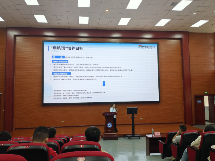 招聘会上,主讲人老师围绕企业发展历程、公司规模、企业价值观、薪资待遇展开介绍,重点解读了本次面向 2022 级学生开放的“启航班”的职责要求与发展路径,明确了学历、专业技能及实践经历等招聘标准。