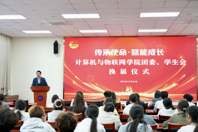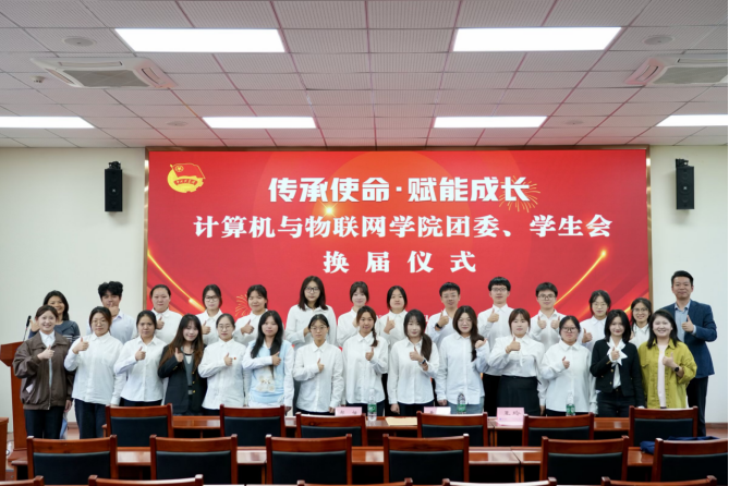 本网讯(图/罗浩、周钲皓 文/苏炳燕)10月23日中午,计算机与物联网学院“传承使命、赋能成长”团委、学生会换届仪式在行政楼201会议室举行。学院党总支书记黄涛、团委书记郝恬、团委副书记王玲及全体团学骨干共同见证团学工作的薪火相传。