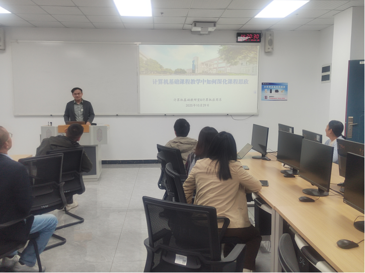 本网讯(文/图 李亚豪)2025年10月29日下午,为进一步落实立德树人根本任务,推动思想政治教育与专业课程深度融合,充分发挥课程育人功能,我院计算机应用系在7901教室成功举办了以“计算机基础课程教学中如何深化课程思政”为主题的专题教研会。本次会议由李帅力老师主持,系部全体教师参加了本次研讨。