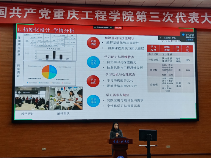 培训中,何睿老师从PBL(项目式学习)的教学理论根基出发,系统剖析了其“以学生为中心”的核心教育理念。他结合《面向对象分析与设计(OOAD)》课程,重点分享了如何将来自企业的真实项目深度融入教学的全过程,详细讲解了从项目初始化、教学框架设计到具体实施与评价的完整闭环。通过生动的课程案例展示,参会教师直观感受到了PBL模式在激发学生学习主动性、提升分析与解决复杂问题能力方面的成效。