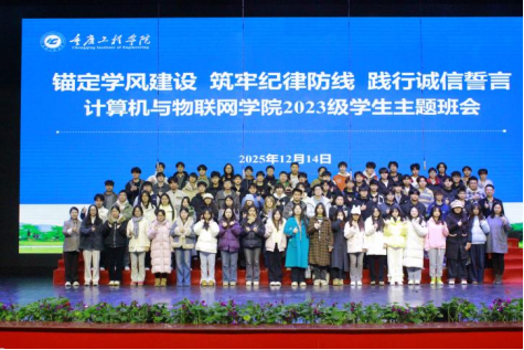 本网讯(图/罗浩 文/郝恬)12月14日晚,计算机与物联网学院在学术报告厅举行“锚定学风建设 筑牢纪律防线 践行诚信誓言”2023级学生主题班会,学院党总支书记黄涛、年级辅导员及23级全体学生共同参会。