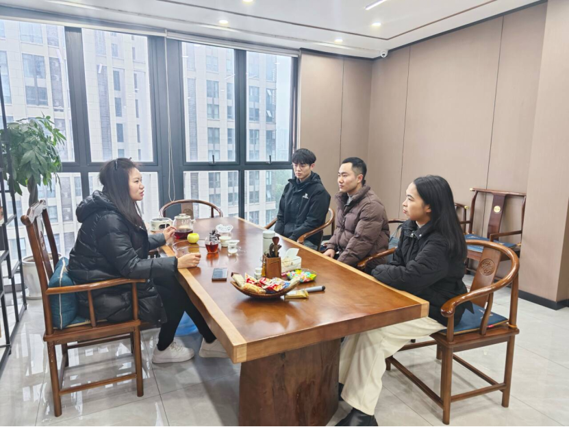 走访期间,两位老师与该公司负责人冯老师及学生深入交谈,负责人首先详细介绍了公司发展情况,公司聚焦"AI+金融+教育+实体"领域,以"产业化投资+技术驱动"为核心发展。随后围绕就业需求、学生表现、未来合作等展开交谈,该企负责人对我院学生的工作表现高度认可,同时,表示欢迎推荐优秀的毕业生到企实习就业。两位老师鼓励学生应牢记重工校训,在所在岗位发光发热,积极为公司奉献,不断提高个人能力与综合实力。