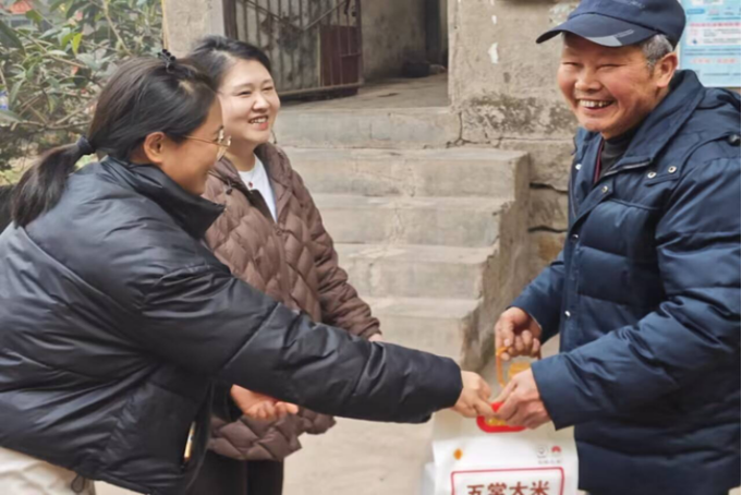 座谈结束后,学院工会主席魏登雪、团委书记郝恬带领志愿者团队,在新玉村村委书记的陪同下,专程走访慰问了村内困难老党员。志愿者们为老党员们送上米、油等节日慰问品与真挚的新春祝福,与他们促膝长谈,悉心聆听老党员们在革命、建设时期的奋斗往事与人生感悟。老党员们用朴实的语言讲述着那段艰苦卓绝却热血沸腾的岁月,分享着对党的忠诚与坚守,让在场志愿者在回望历史中接受了一次深刻的党性教育,进一步坚定了理想信念,汲取了奋进力量。