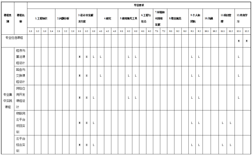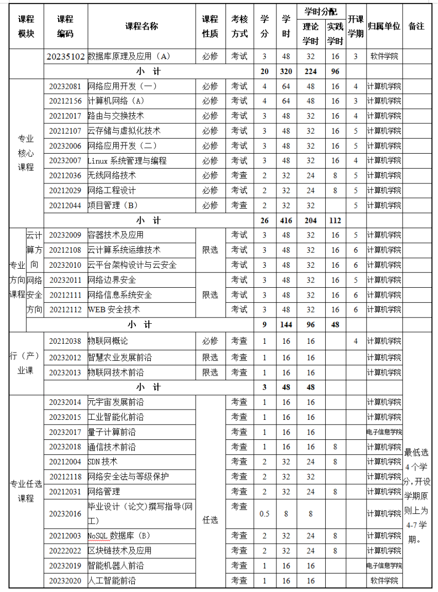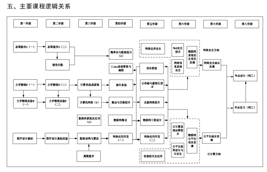 物联网云平台项目实训(一)、物联网云平台项目实训(二)、云平台综合实训、物联网系统安全项目实训(一)、物联网系统安全项目实训(二)、网络安全项目实训、毕业实习(网工)、毕业设计(网工)
