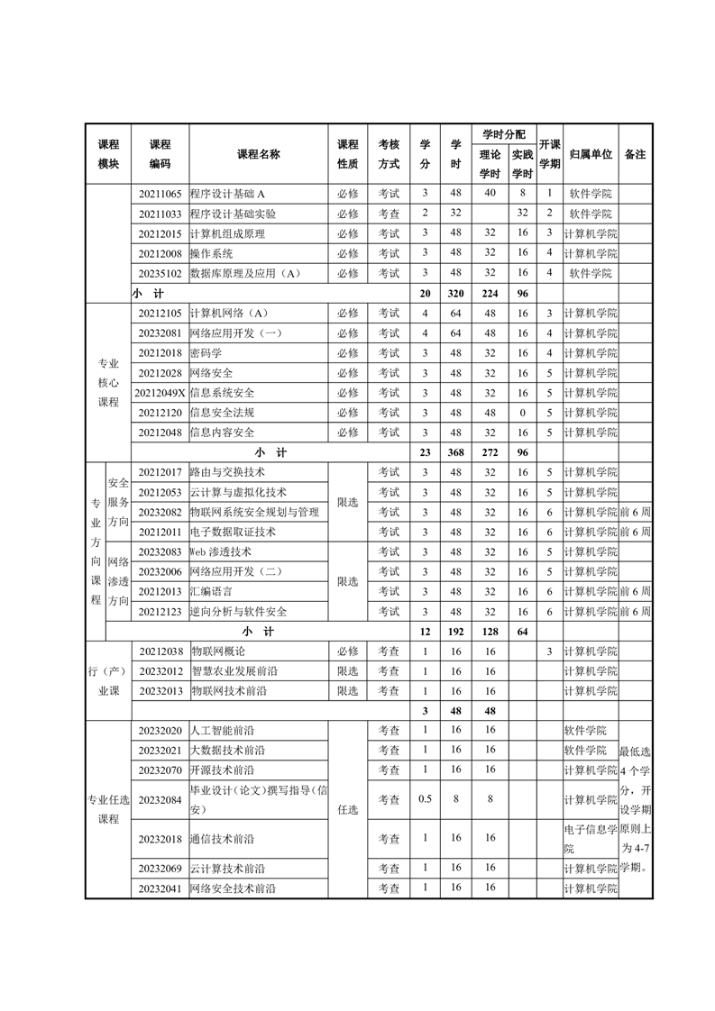 信息安全专业人才培养方案(2023 版)