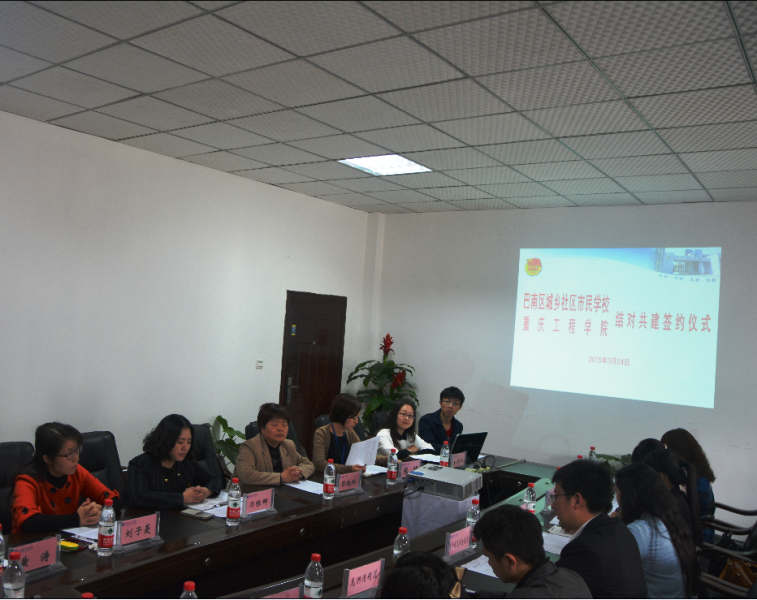 共青团重庆市巴南区委书记刁维娜表示我校青年志愿者组织在2014年城乡社区市民学校结对共建工作中所取得的成绩,希望我校各级共青团组织能按照协议书规定,切实对接好、交流好、共建好、发展好,不断探索创新,扎实开展好城乡社区市民学校结对共建活动,把市民学校真正办成一所没有围墙的社会大学。
