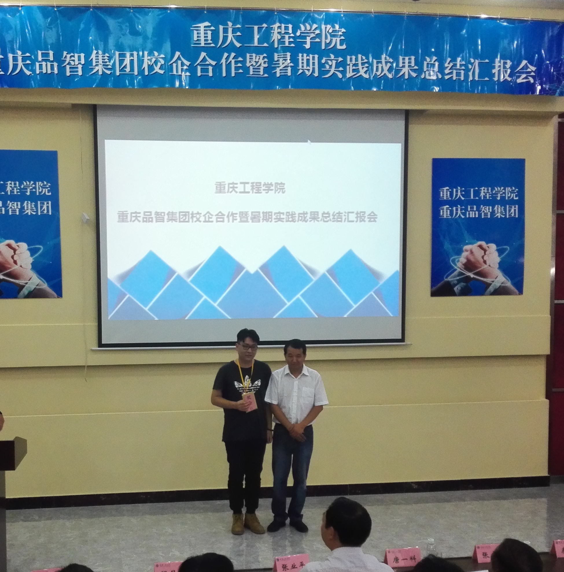 本网讯(图文/校企合作办毛云莹) 9月13日下午,我校在阶梯报告厅,举办重庆工程学院和品智集团校企合作暨暑期实践成果总结汇报会,规划校企合作长远蓝图,分享暑期实践经验,奖励优秀个人,举行优秀学生就业协议签约仪式。