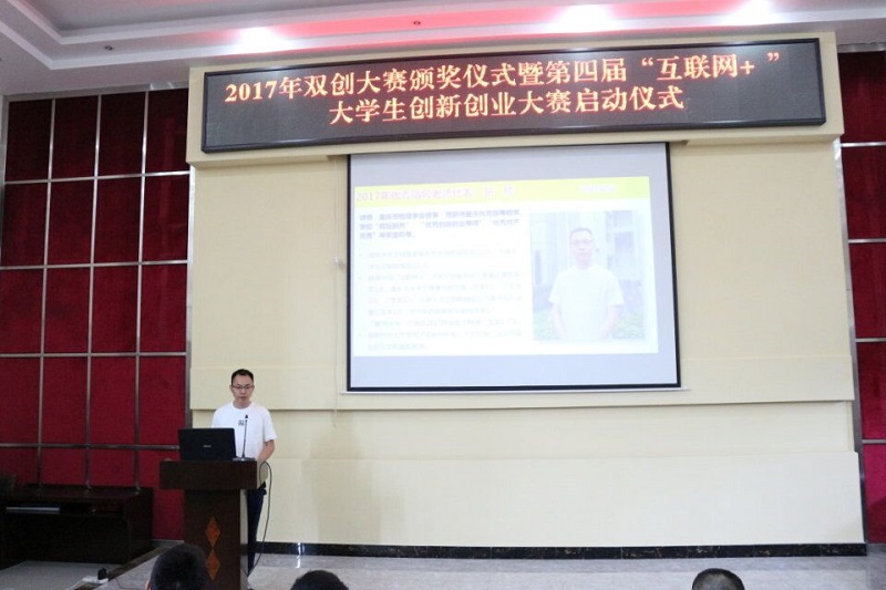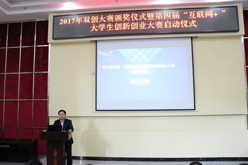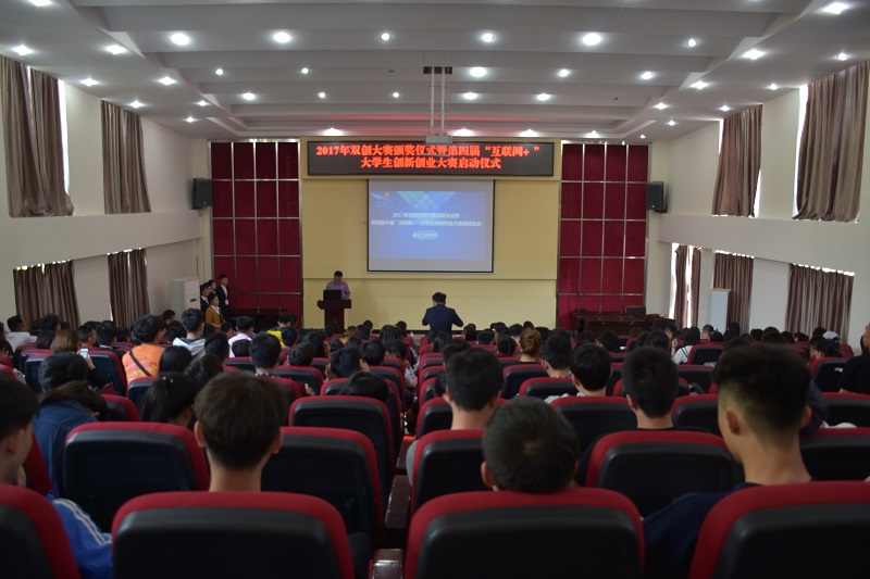 本网讯(文/招就处杨凡 大学生记者团 图/陈浩) 为推动双创工作的深入开展,4月18日下午,我校在行政楼阶梯报告厅举行2017年创新创业大赛表彰暨第四届中国“互联网+”大学生创新创业大赛启动仪式。