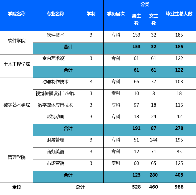 2020届专科毕业生基本信息统计表