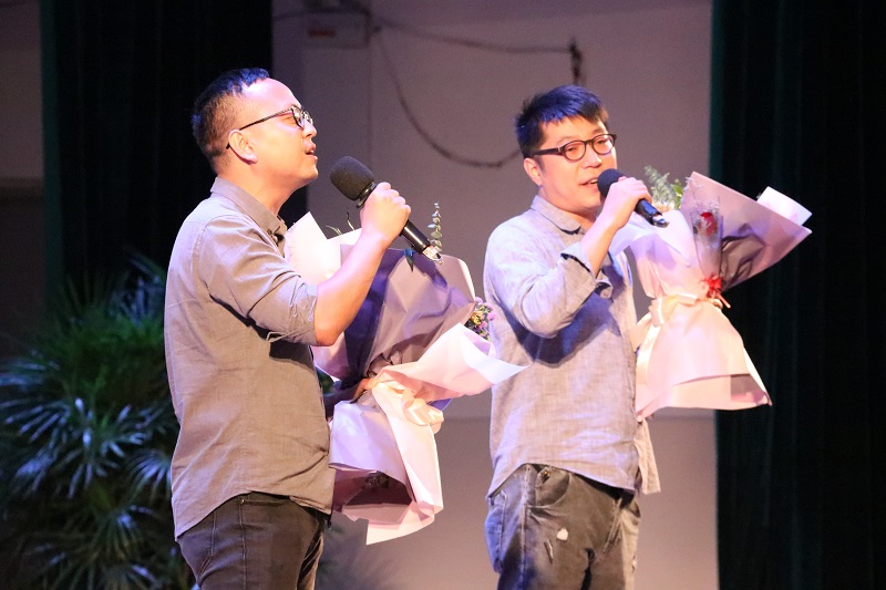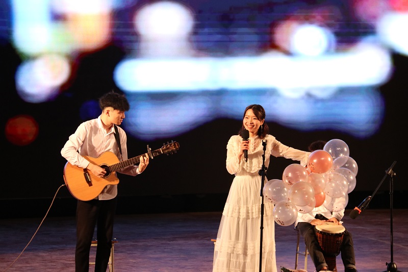 所有参赛选手演唱结束后,管理学院教师徐梦琳和土木工程学院教师郭宁红还为现场观众深情演唱歌曲《我和我的祖国》。