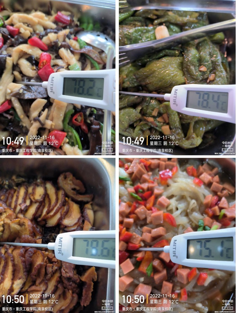 刘冬梅老师带领我们采访到负责食堂管理的王胜兰经理,她向我们介绍了食堂的一般工作流程。原来那些热气腾腾的饭菜端在我们手上之前经历了许多步骤:第一关便是食材的监管,到了的食材会进行验收,不合格的蔬菜和鲜肉都会被退回重订;第二关加工,早上7点-8点工作人员就开始对蔬菜进行择洗、浸泡,保证食材的干净卫生;第三关烹饪,普通档口午餐10点就开始准备饭菜,做好后经过检验温度是否达标、味道是否符合、搭配是否均匀,一切合格后才会允许售卖。而做早餐的窗口凌晨2:30或3点就开始准备食材,和面、搅馅儿、上蒸笼,6点一切就绪,准备迎接同学们的到来。