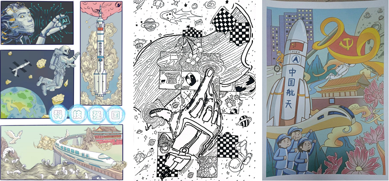 本网讯(文/图 数字艺术学院 李毅)为宣传贯彻党的二十大精神,助力学院师生学习研讨二十大报告,切实把我院师生的思想认识和行动统一到党的二十大精神上来,数字艺术学院在10-11月举办了“图解二十大,共展新画卷”绘画作品征集活动。