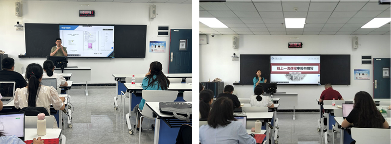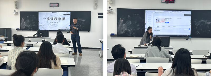 5月15日,由建筑工程学院老师贵体进、罗蓓蓓分享了市级一流课程申报书撰写技巧,贵体进以《环境空间设计》为例,强调课程建设与国家政策、应用型定位相结合,突出教学改革和创新实践,以期提升教学质量和学生能力;罗蓓蓓以《网络营销》课程为例,从课程教学设计、建设流程、创新特色、教学效果四个方面探讨了线上课程设计申报思路及撰写技巧。