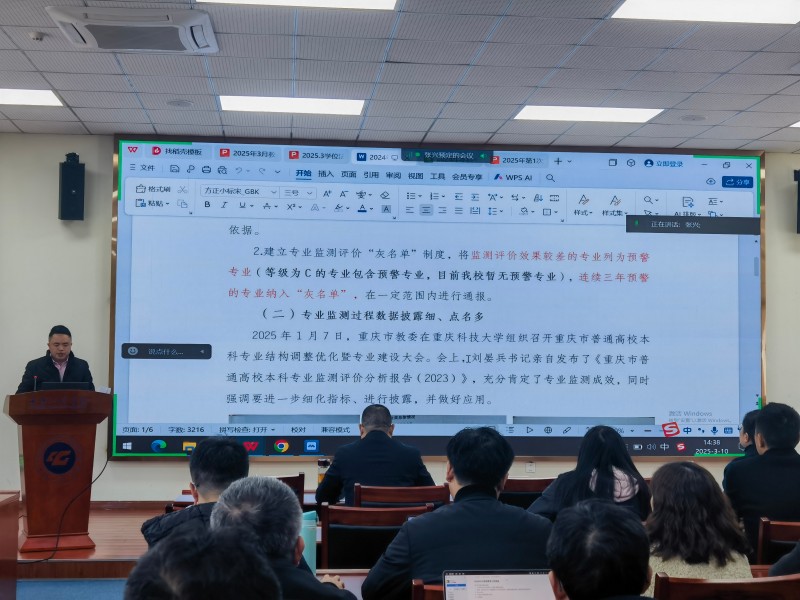 本网讯(文/图 教务处 张兴)3月10日下午,学校在行政楼第四会议室召开2025年3月教学工作例会。副校长谭明术、王琼花出席会议,质量管理办公室负责人、教师发展中心负责人、各教学单位负责人、分管教学副院长(院长助理)、教务科长、教学秘书,教务处、学校教学督导团全体成员参加会议。会议由教务处处长杨倩主持。