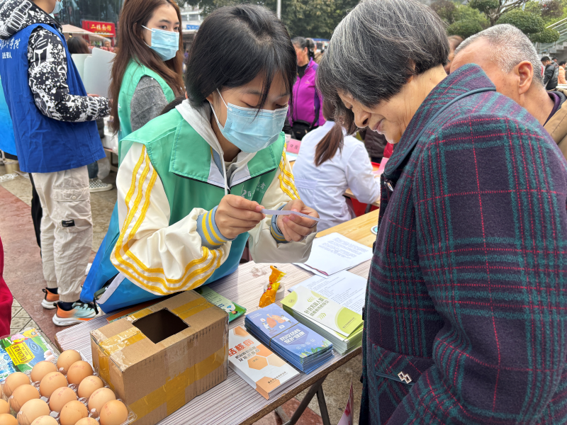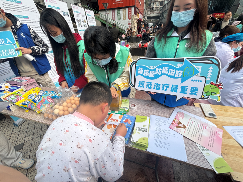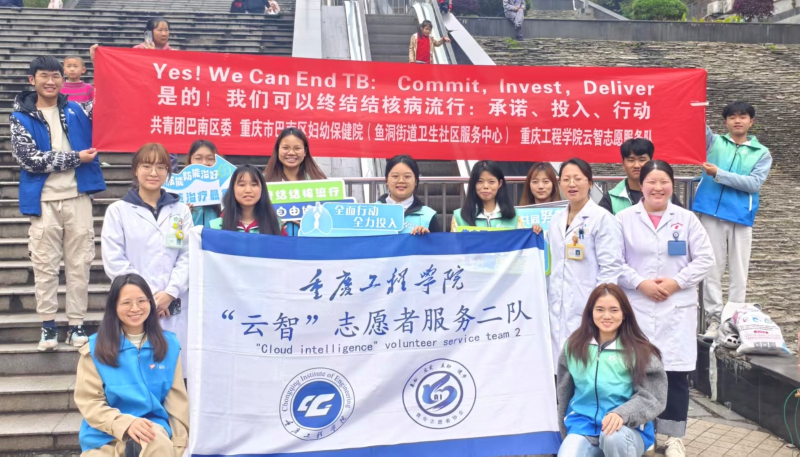 本网讯(文/图 大数据与人工智能学院 王惠俊)在第30个“世界防治结核病日”来临之际,为全面贯彻落实《“健康中国2030”规划纲要》《全国结核病防治规划(2024-2030年)》,切实提高群众结核病防治知识知晓率,3月23日上午,由重庆市结核病防治所、共青团巴南区委、巴南区疾病预防控制中心联合主办,巴南区妇幼保健院、重庆工程学院云智志愿服务队承办的“你我共同努力 终结结核流行”主题宣传活动在巴南区龙洲湾明华龙洲半岛成功举办。本次活动通过“科普宣讲+互动体验+健康义诊”的创新形式,吸引了周边数百名群众参与。