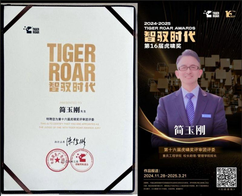 本网讯(文/图 管理学院 朱露)全国第十六届虎啸奖评审工作于近日正式启动,我校校长助理、管理学院简玉刚院长因学校在数字营销人才培养方面的社会影响力受邀担任评审团评委。