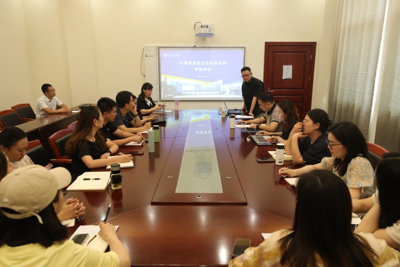 本网讯(文/人事处 杨芳琼 图/大学生记者团)为进一步加强学校干部队伍建设,提升后备干部的综合素质与履职能力,明确干部角色定位,助力个人成长与职业发展,党委教师工作部、人事处于6月5日组织了“干部角色定位与成长发展”后备干部专题培训会。本次培训由校长助理、管理学院院长简玉刚主讲,组织部部长覃华伟和全校后备干部参加、党委教师工作部部长助理杨芳琼主持。
