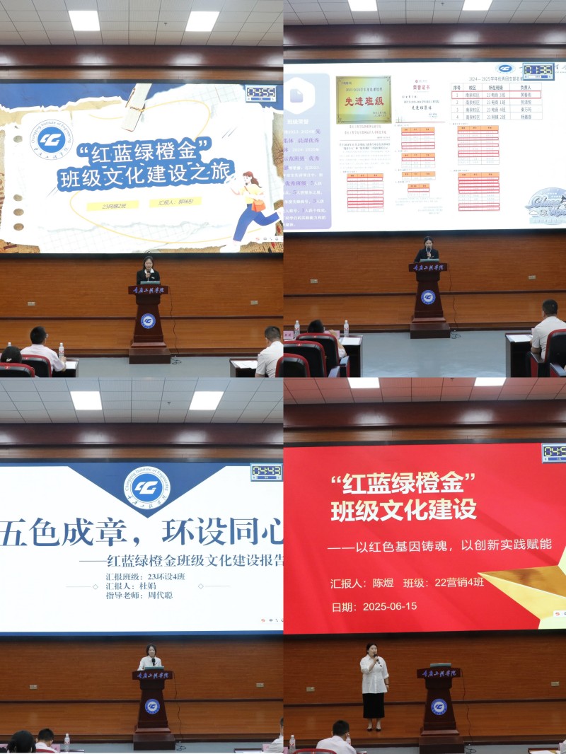 本网讯(文/图 学生处 吕颖莉、双桥校区 杨世玲)为打造学风浓、班风正、素质高、凝聚力强的班集体,营造争先创优的良好班级氛围,提高班级凝聚力,6月15日,南泉校区和双桥校区分别开展了2024-2025学年“红蓝绿橙金”班级文化建设先进班集体汇报评选会。