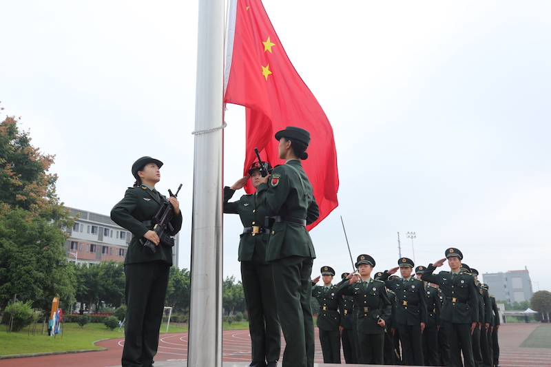 《义勇军进行曲》激昂回荡,五星红旗携着晨光冉冉升起,全体师生肃立行注目礼,大会在庄严的升旗仪式中拉开帷幕。