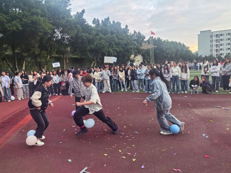 活动伊始,各班级以创意形式开展风采展示,激昂的班级口号响彻赛场,正式拉开活动序幕。随后,拔河、夹板接力、一圈到底、侧向同心走、终极踩气球等集体竞赛项目依次推进。