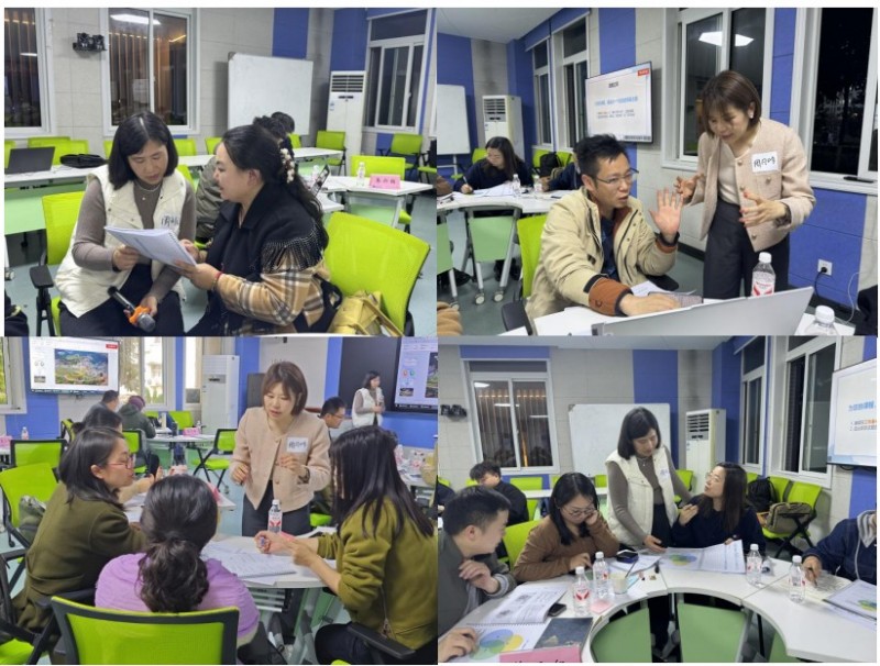 工作坊坚持“做中学”理念,理论讲解与实操演练深度融合、环环相扣。主讲教师全程驻场指导,逐一对参训教师进行个性化辅导,精准把脉选题方向;参训教师则在真实任务驱动下,依次完成项目选题、3R设计、分解设计与评价设计等核心模块的实战演练,螺旋递进完善教学方案。最终,全体教师集中开展场景化项目式教学过程设计,完成成果聚合、交流与反馈,形成一批真实可落地、可操作的项目式教学设计作品,实现从理论认知到教学成果的完整转化。