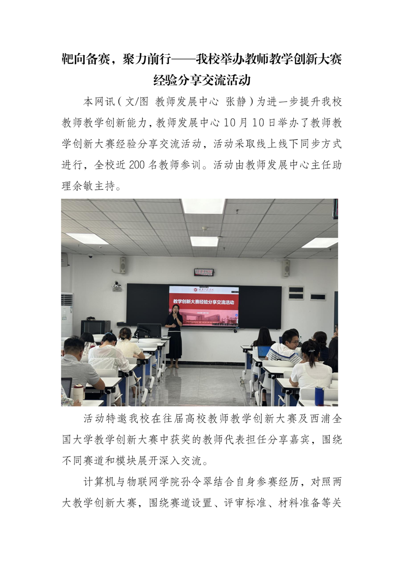 靶向备赛,聚力前行——我校举办教师教学创新大赛经验分享交流活动