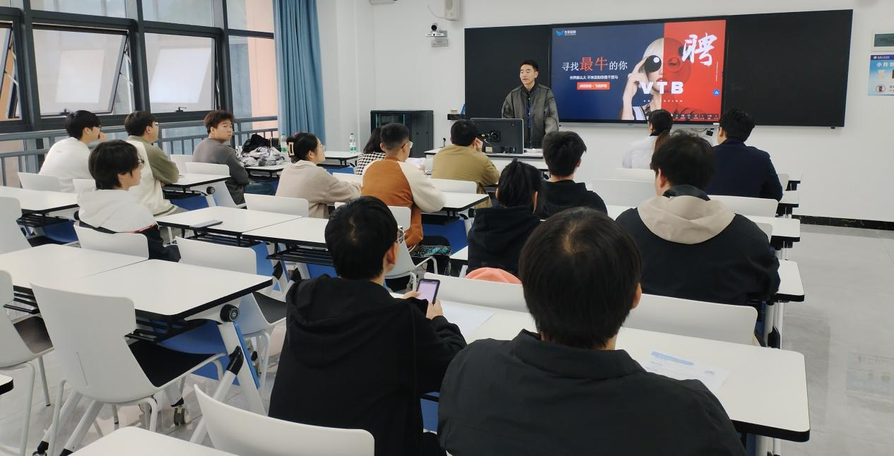 本网讯(文/图 大数据与人工智能学院 敬夫)11月12日,重庆先享智能科技有限公司到我院开展专场招聘,公司总经理文总详细讲解了公司的相关情况。本次宣讲共吸引南泉、双桥两校区100余名同学线上线下参会。