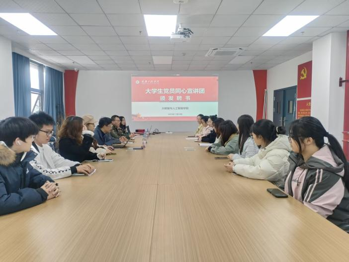 本网讯(文/图 大数据与人工智能学院 杨宝/郭芯彤)为深入学习贯彻习近平新时代中国特色社会主义思想,强化新时代高校统战工作,引导青年学生传承红色基因,厚植家国情怀,11月19日下午,大学生党员同心宣讲团聘任仪式在7205举行,巴南区工委、大数据与人工智能学院党总支相关负责人及全体宣讲团成员参加。
