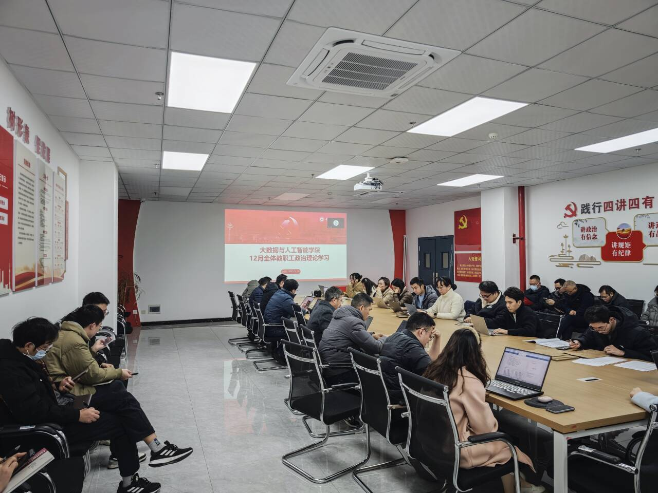 本网讯(图/文 大数据与人工智能学院 杨孟凡)为深入学习贯彻党的民族理论政策,进一步深化全体教职工对铸牢中华民族共同体意识重大意义的认识,12月17日下午,大数据与人工智能学院组织开展了以“健全铸牢中华民族共同体意识制度机制”为主题的政治理论学习。学院全体教职工参加了本次学习活动。学习活动由学院党总支副书记宁俊龙领学。