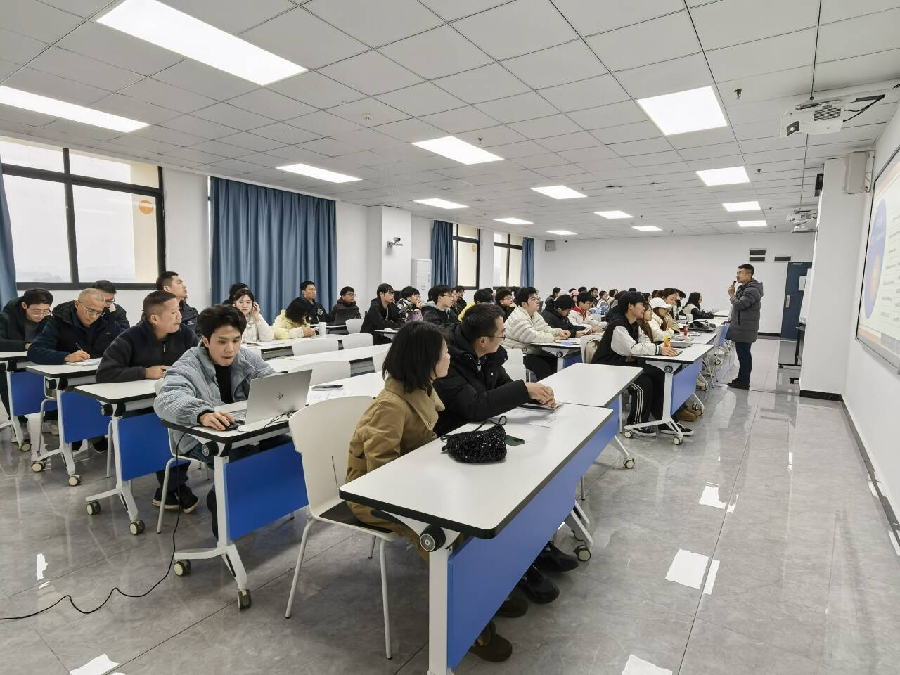 本网讯(文/图 大数据与人工智能学院 慕江林)近日,大数据与人工智能学院组织开展2025-2026学年第一学期院级公开课观摩活动。本次观摩课由慕江林老师主讲,课程为《语言模型应用开发实训》,授课内容聚焦“意图识别模块的开发——Encoder-only模型选型与Hugging Face模型加载测试”,充分体现了“技术驱动、应用落地”的教学理念。