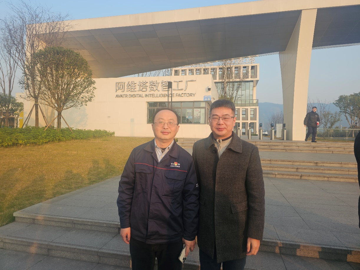 本网讯(文\图 大数据与人工智能学院 敬夫)1月9日,大数据与人工智能学院副教授谭光柱前往长安汽车数字工厂进行走访调研。长安汽车数字工厂党委副书记吴劲浩、数智工厂数字化运营中心高级经理戴翔等热情接待,双方围绕数智工厂系统架构、数据质量管理及厂校合作等议题展开探讨。