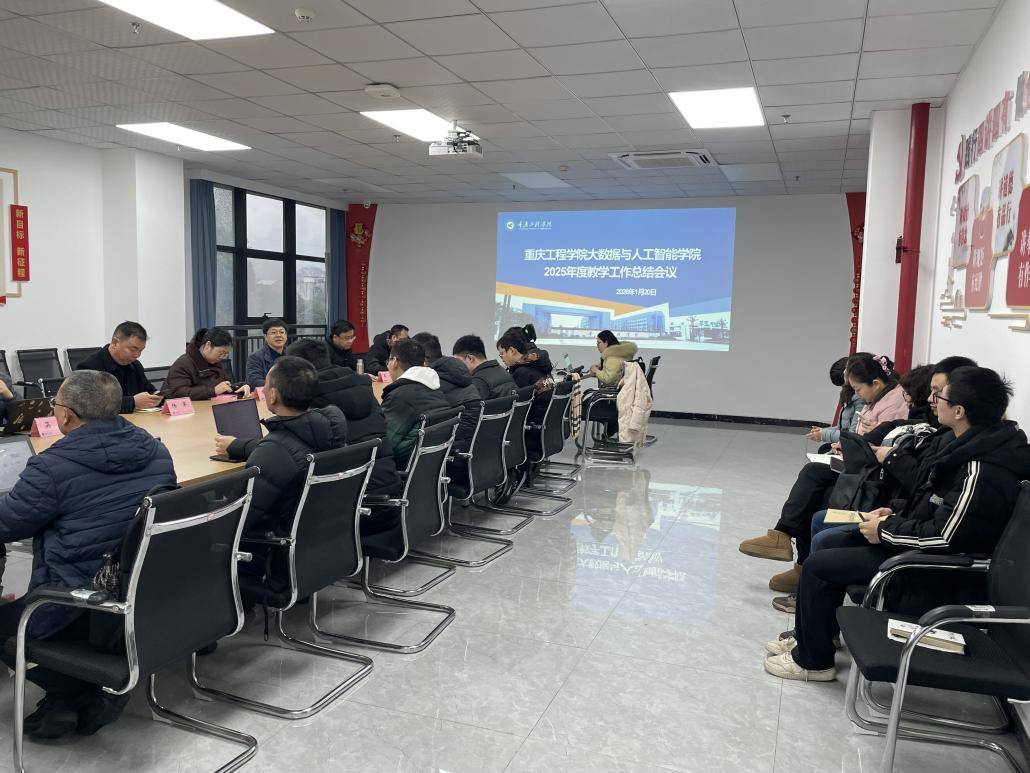 本网讯(文/图 大数据与人工智能学院 傅沙沙)1月20日上午,大数据与人工智能学院在南泉校区7205会议室组织召开了2025年度教学工作总结会议。会议由教学副院长廖宁主持,教务处处长杨倩、学院领导及全体教职工参会。会议旨在全面总结2025年度教学工作,围绕“两融一改”核心目标,凝聚共识,谋划2026年教育教学发展新篇章。