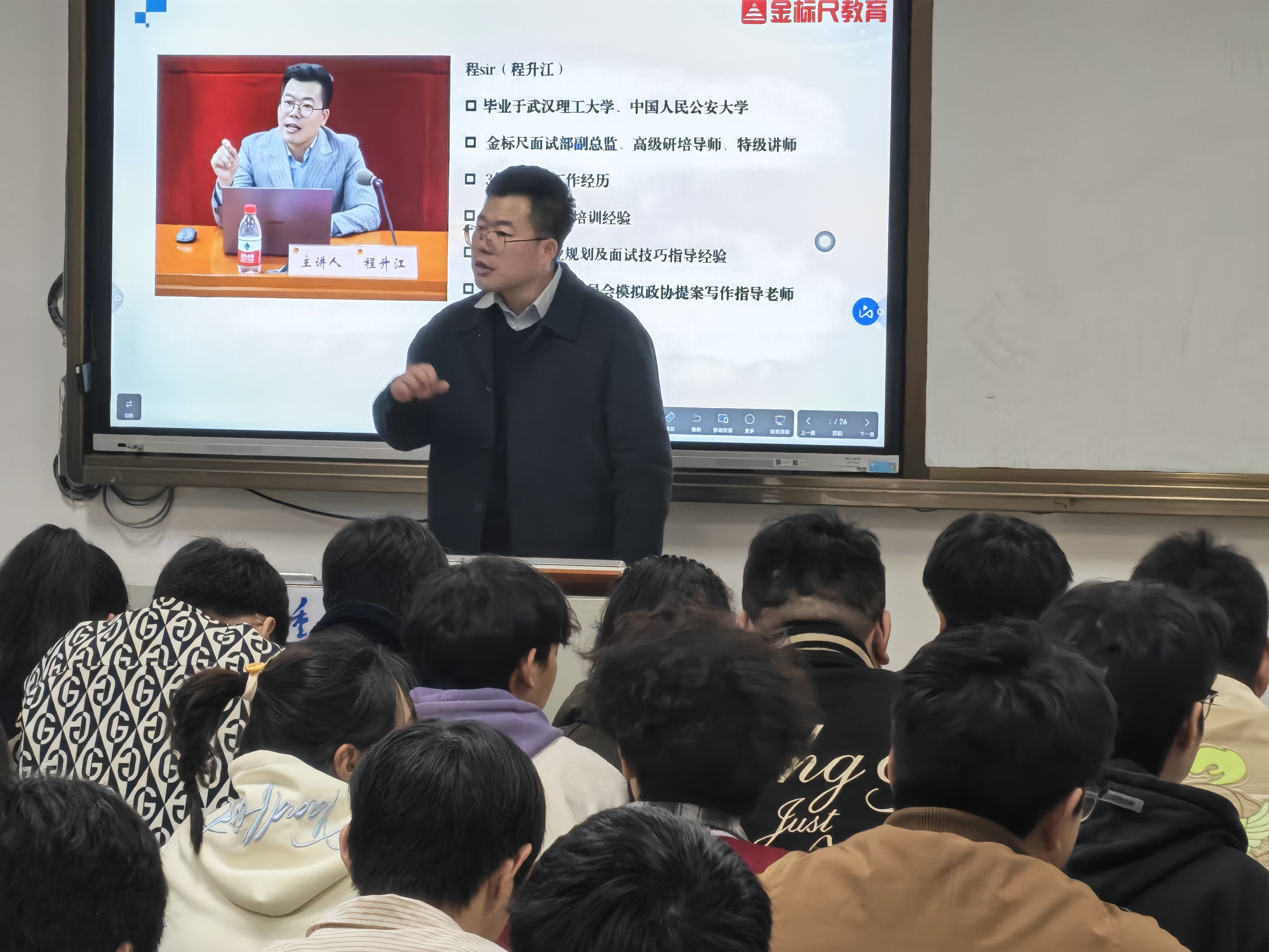 在互动交流环节,同学们就岗位选择、跨专业报考、基层项目政策等问题踊跃提问,程老师逐一耐心解答,并结合自身多年公考辅导经验,给出了针对性的建议。现场气氛热烈,不少同学表示,通过此次讲座,对公职类考试有了更清晰的认识,备考方向更加明确,信心进一步增强。