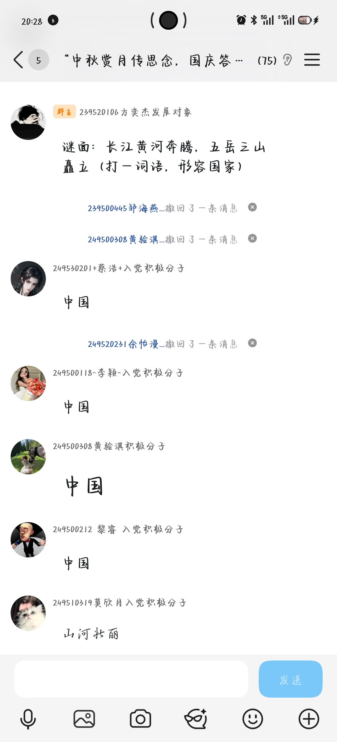 “我的专属双节饭” 板块汇聚佳肴,金黄饱满的月饼、丰盛可口的家宴轮番 “登场”。一张张照片不仅承载着家庭温情,更将浓厚的节日仪式感展现得淋漓尽致。此外,同步开展的 “双节知识大闯关” 线上猜灯谜环节,凭借趣味性与知识性,成为本次活动的一大亮点。灯谜题目内容涵盖中秋传统习俗、国庆发展历程、校园文化特色等多个领域,学子们在线上热烈互动、踊跃抢答,趣味比拼不仅加深了对双节文化内涵与家国发展脉络的认知,也进一步厚植了爱国情怀。