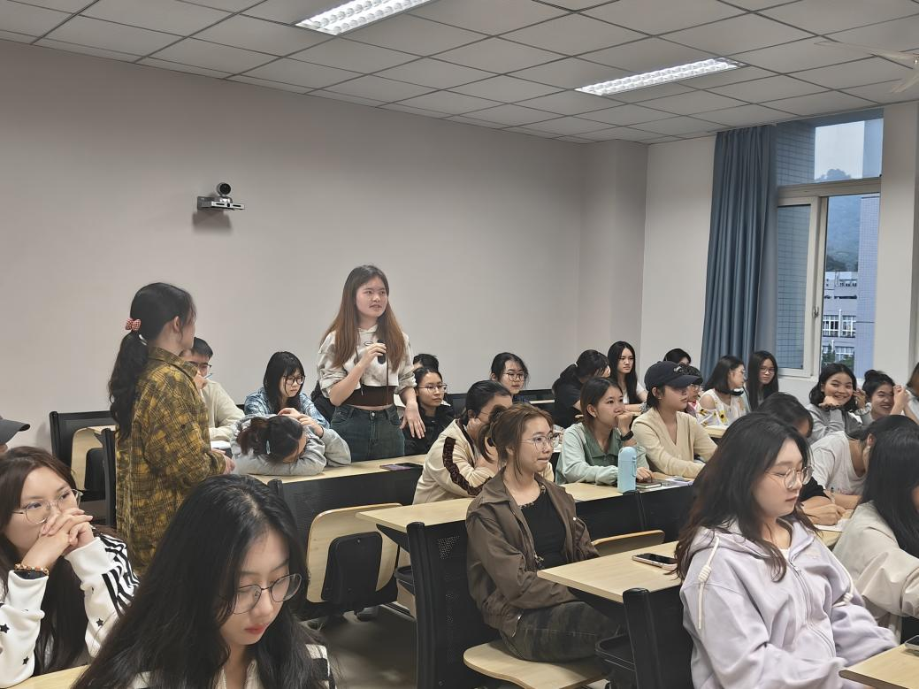 在互动环节,主讲人创新采用问答游戏形式,现场随机选取三名观众参与知识竞答。同学们踊跃参与,通过寓教于乐的方式重温了国家发展历程中的重要事件和辉煌成就,现场气氛热烈,展现了青年学子积极向上的精神风貌。