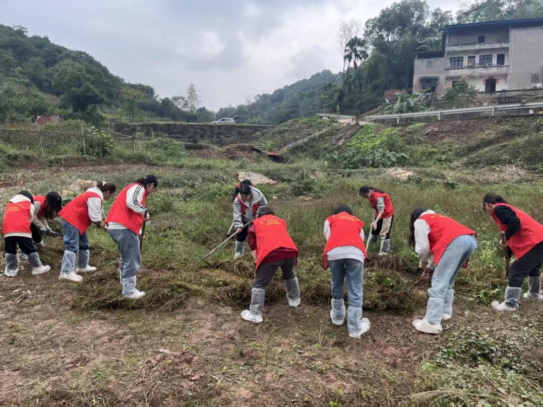 活动当天,志愿者们身着红色志愿服,在乡间地头开展田间劳作实践,手持农具清理杂草、翻耕土地。尽管田间泥土湿滑,大家热情高涨,在亲身劳作中体会农耕的艰辛,深刻认知乡村产业发展的基础需求,也对“粒粒皆辛苦”的农耕文化有了更直观的感悟。