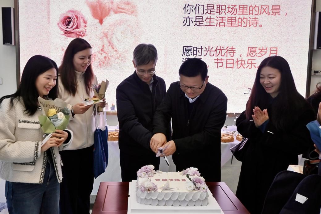 春和景明,万象更新。在“三八”国际妇女节来临之际,为切实关怀机关女教职工,传递学校的温暖与敬意,增强团队凝聚力与向心力,3月6日,我校机关工会在行政楼一楼隆重举办“三八”国际妇女节欢庆活动,为全体机关女教职工送上专属节日祝福,致敬坚守教育岗位、绽放巾帼芳华的女园丁们。