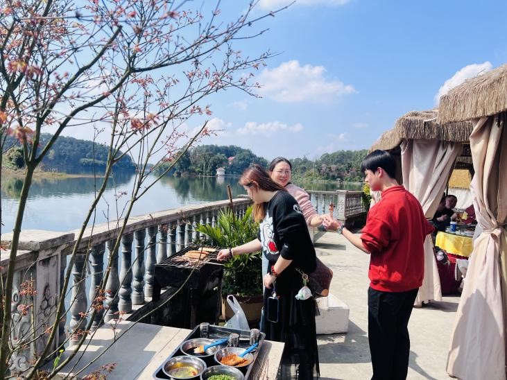 老师们在龙水湖畔沐浴暖阳,一边畅享烧烤美味,一边驻足欣赏湖畔繁花,湖水粼粼与花香、笑语相映成趣。畅谈间,分享工作感悟与生活美好。