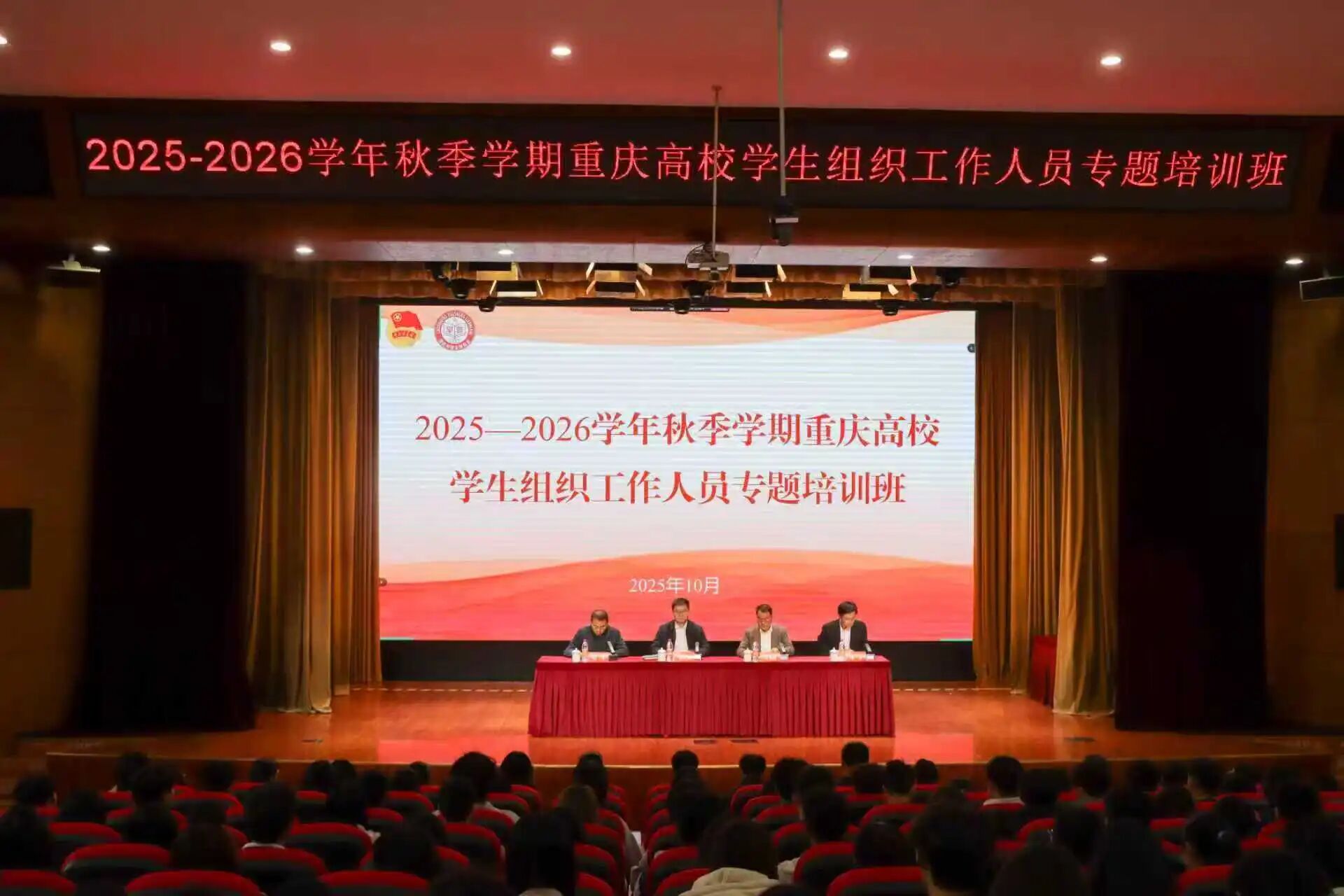 为深入学习宣传贯彻党的二十届四中全会精神,学深悟透习近平总书记关于青年工作的重要思想,认真落实全国学联二十八大精神,加强全市学联学生会工作和学生社团建设管理,10月31日至11月1日,团市委、市学联在重庆移通学院举办2025—2026学年秋季学期重庆高校学生组织工作人员专题培训班。团市委书记龙东阁出席开班式并讲话,团市委副书记张珂主持开班式。我校学生会主席团成员邓力线下参会,校、院两级学生组织骨干、社团主要学生骨干300余人同步通过线上平台全程参与培训学习。