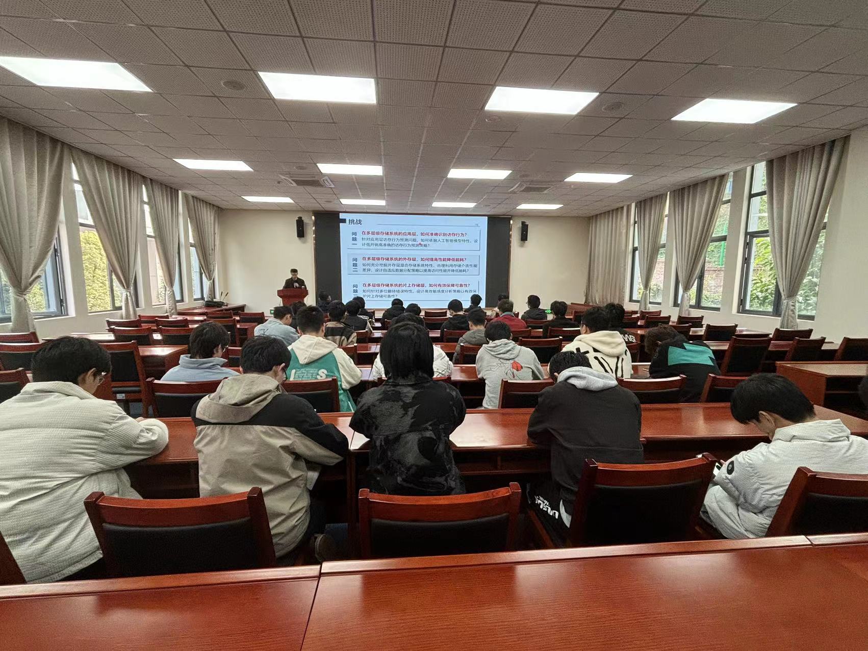 (图/文 大数据与人工智能学院 马凯)12月6日下午2点,重庆大学陈咸彰副教授在行政楼201报告厅作“终端存储系统的智能优化方法探索”的专题讲座。讲座由大数据技术与应用研究所所长何宏靖主持,大数据与人工智能学院50余名师生参加。