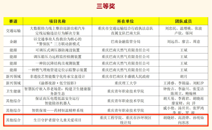近日,第十届重庆市“五小”创新晒暨优秀项目推介展示交流系列活动圆满落幕。经报名、初赛、决赛等多轮激烈角逐,我校报送的参赛项目荣获市级三等奖,充分展现了我校青年学子扎实的专业素养、活跃的创新思维和积极的实践能力。