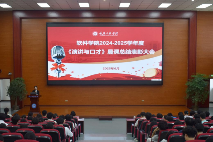(文/图 软件学院 郭丹丹/钟芷雯)为深化语言素养培育,表彰先进典型,6月13日12:30,软件学院在7807报告厅举行2024-2025学年度《演讲与口才》课程总结表彰大会。大学生素质教育中心邹春霞教授、学院党总支书记刘子菱、学生科科长张运、23级全体辅导员出席,23级各班学生代表共同见证这场语言艺术的成果盛会。