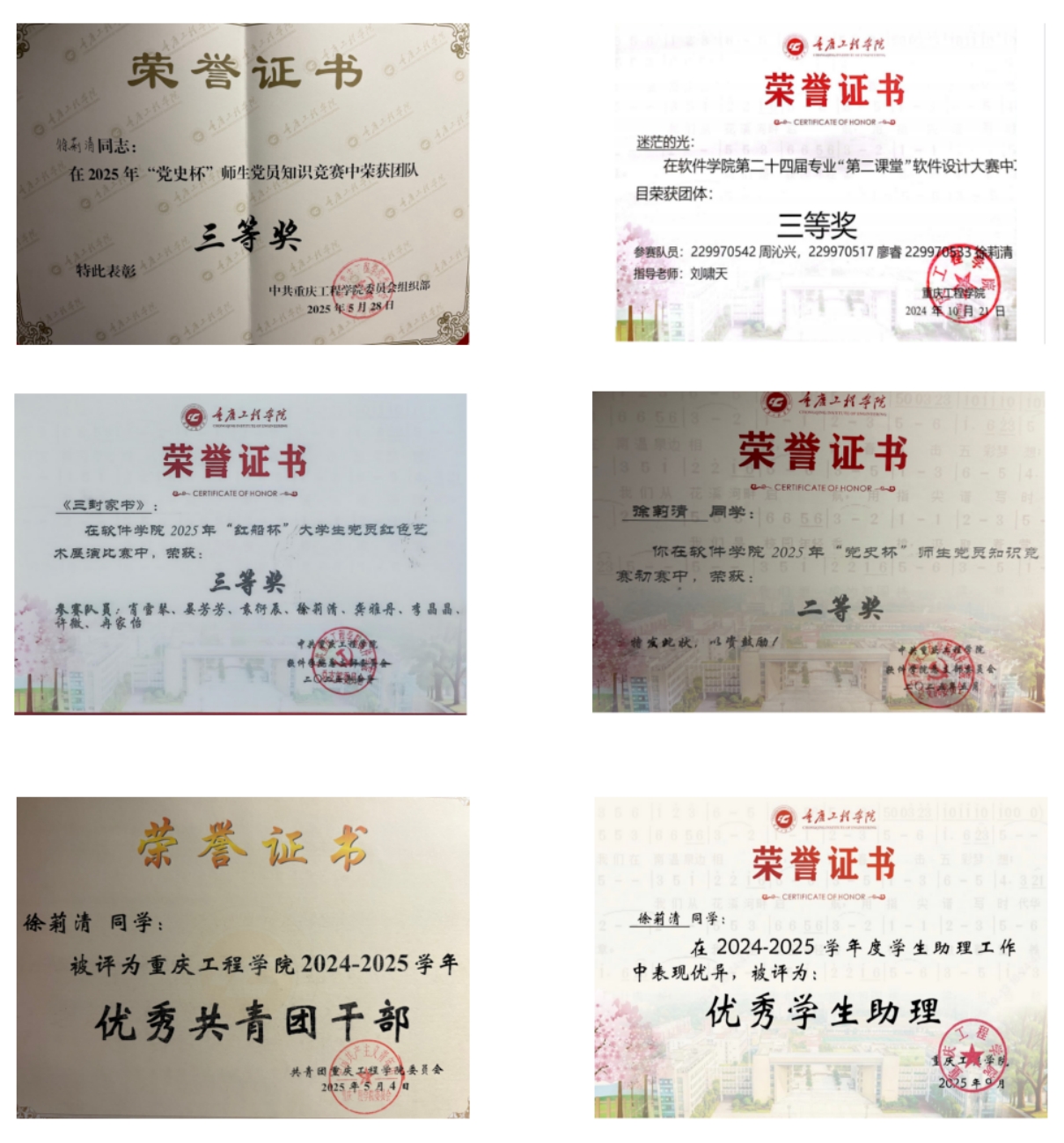 2025-2026学年度 获重庆工程学院“优秀学生助理”荣誉称号;