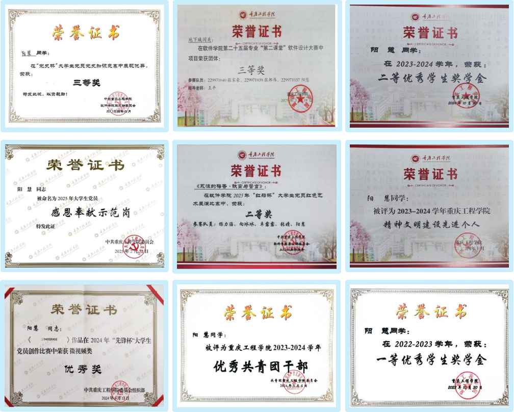 2024-2025学年度 获重庆工程学院三等优秀学生奖学金;