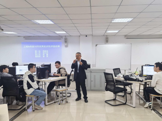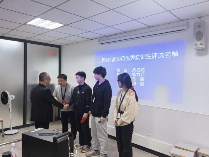 会议最后,传音王总邀请周院长为测试基地10月优秀实训生颁奖,并鼓励同学们珍惜平台机会,努力提升专业技能,争取早日进入传音实习或就业。